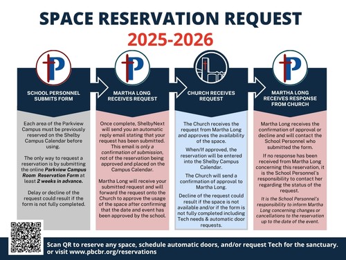 Each area of the Parkview Campus must be previously reserved on the Shelby Campus Calendar before using.